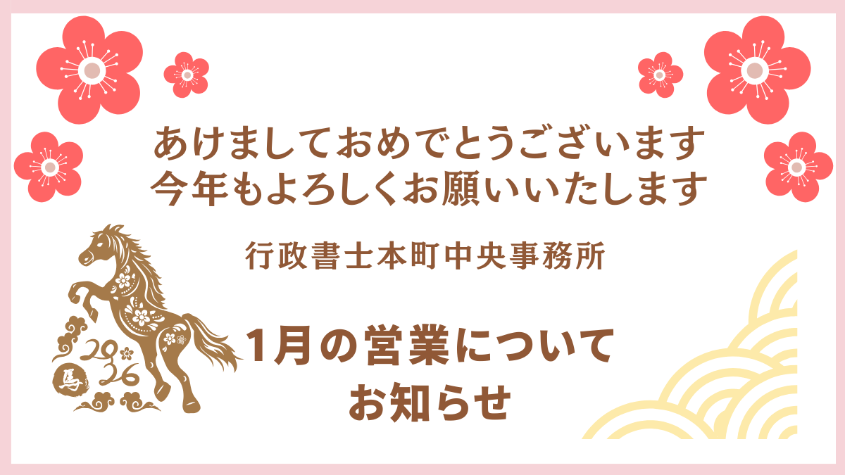 行政書士本町中央事務所 「1月の営業のお知らせ」